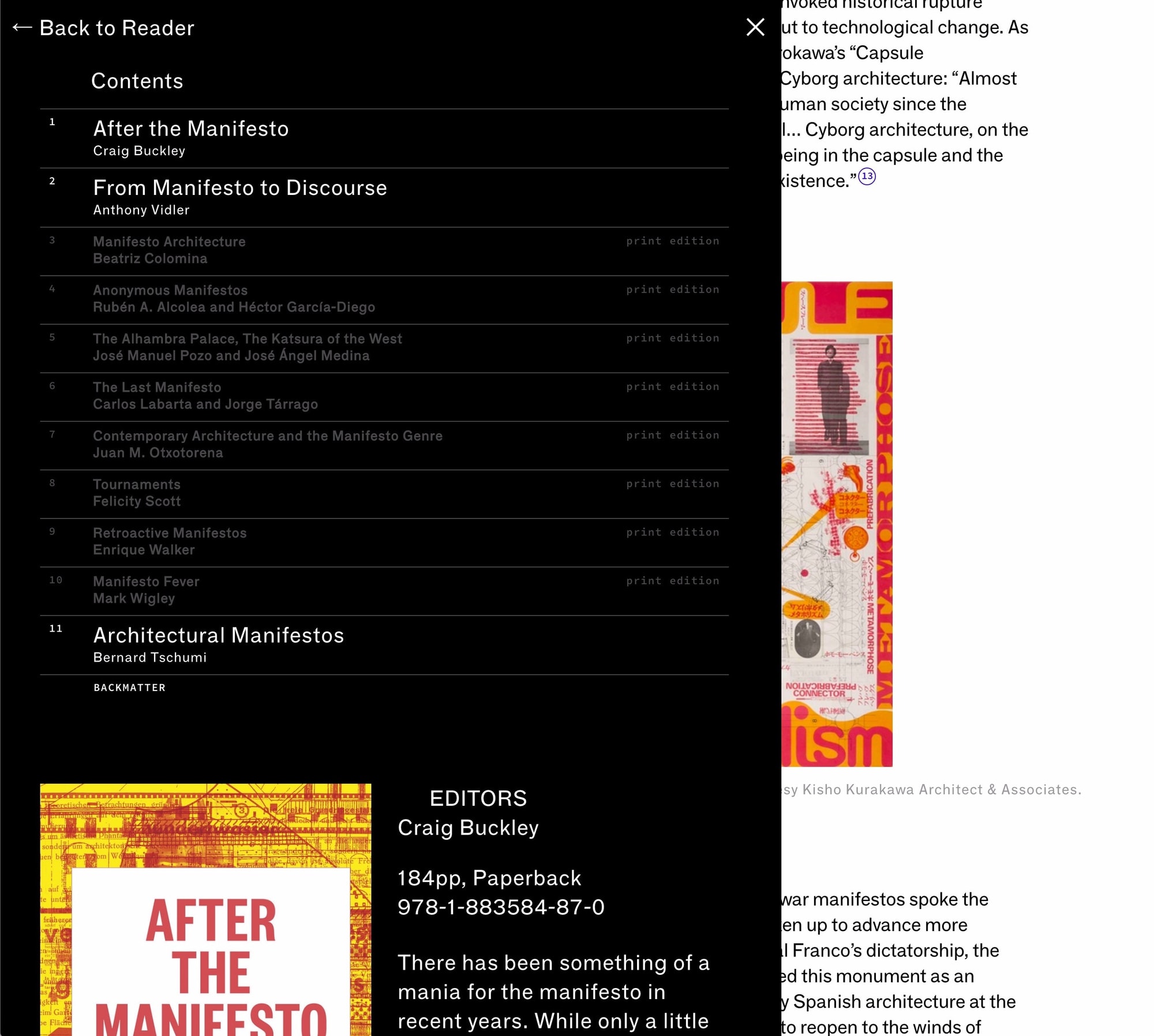 Reader, Columbia Books on Architecture and the City’s new digital publishing platform, explores the virtualization of book content, wholly synthetic and not beholden to the physical constraints of ink on paper. Publications (some also available in print, some not) can be read on the web and downloaded as ePubs, as well as purchased as printed matter where available.